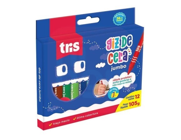 2. Giz de Cera Jumbo Tris 12 Cores - Tris